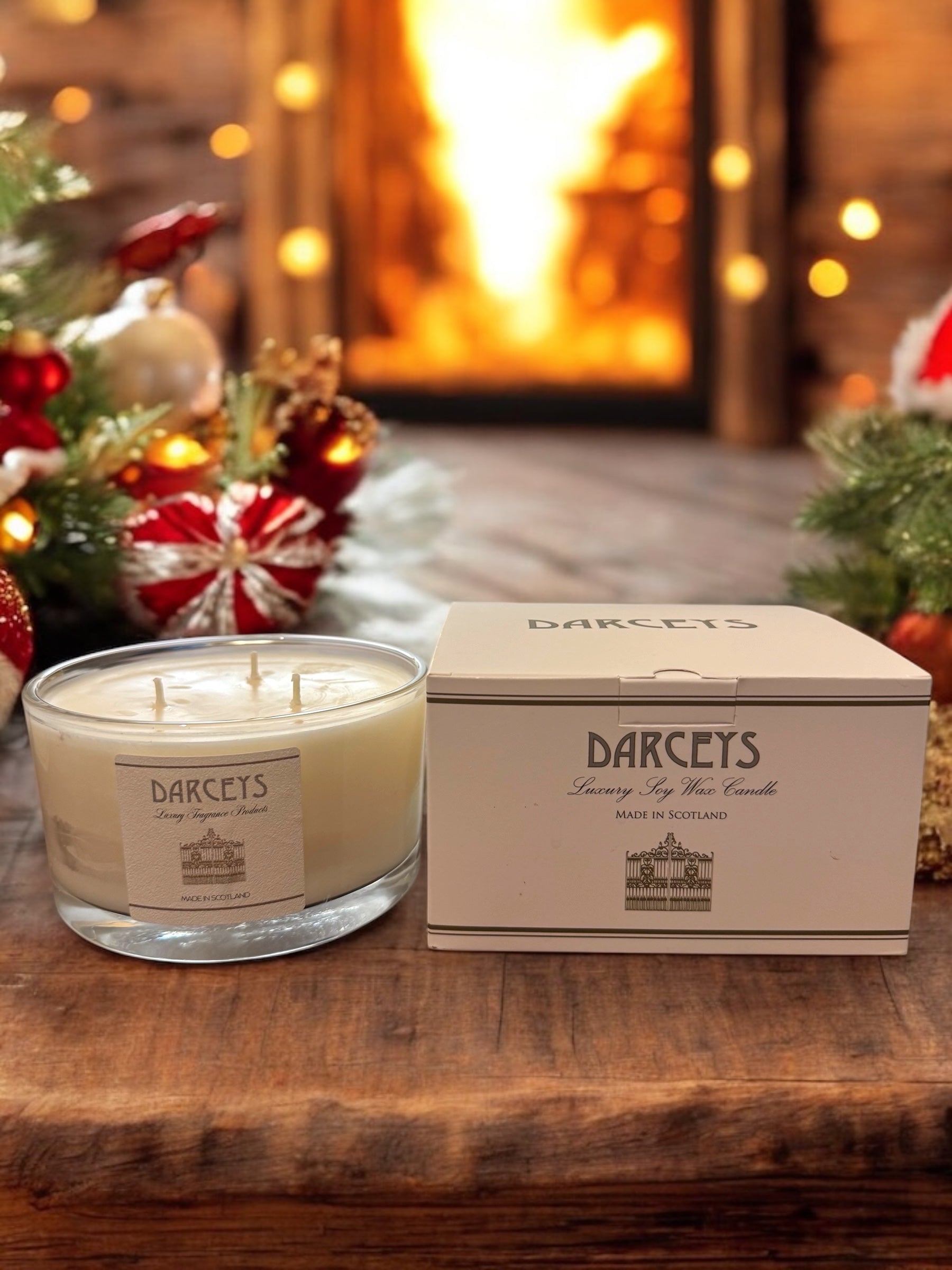 Make Christmas truly shine with Darceys Christmas Triple Wick Candles, available in all 12 festive scents. Hand-poured with clean-burning soy wax, these statement candles offer a powerful, long-lasting fragrance throw and a stunning triple-flame glow — the ultimate centrepiece for magical holiday moments.